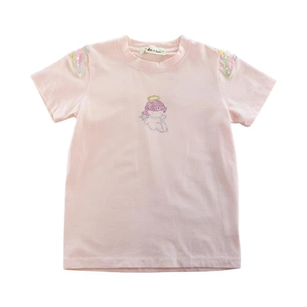 Unleash your little girl's angelic charm with our Angel Wing Tee. Embellished with cute sequins and bling, this tee will surely make her shine. Add this to her wardrobe for a touch of sparkle and style. Available in white and pink.